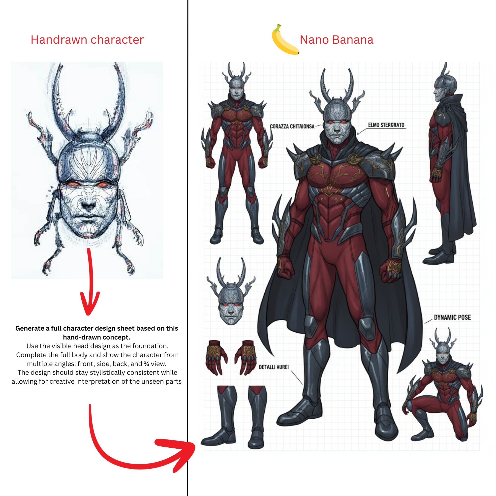 Mention 'anime character sheet', 'Disney style', or 'realistic concept art' to guide the aesthetic.