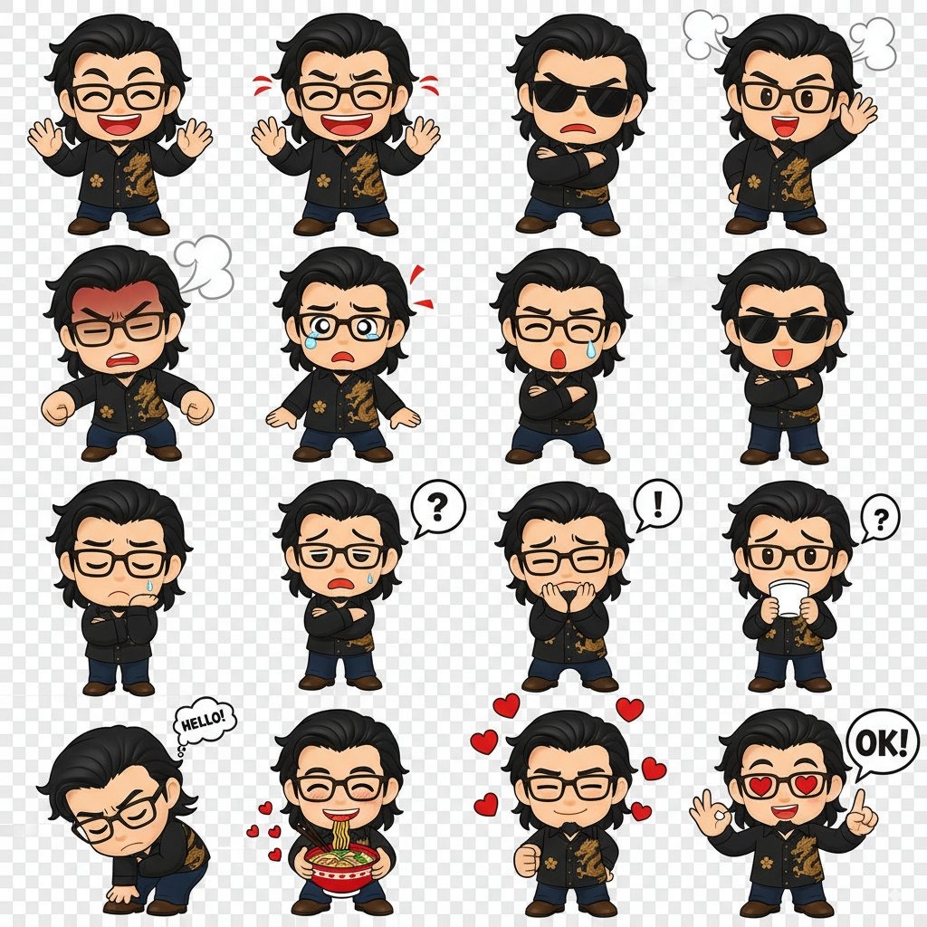 "Animal mascot poses, cute blue dragon, running, jumping, sleeping, eating, sticker sheet style."