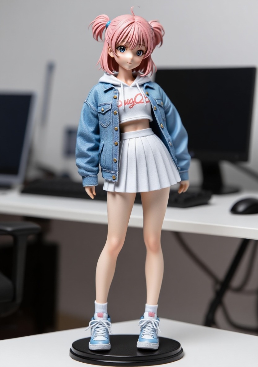 Generate a base figure prompt, then refine details like lighting, camera lens, or material rendering. Adjust one factor at a time for controlled, professional-quality results.