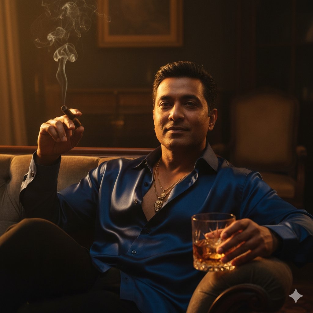 "Rembrandt studio portrait, charcoal backdrop, crisp jawline, 85mm, dramatic shadows, cinematic mood."